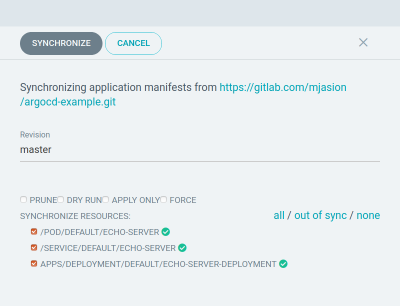 spec: source: path: demo_1/ repoURL: 'https://gitlab.com/mjasion/argocd-example.git' targetRevision: master directory: recurse: true destination: namespace: default server: 'https://kubernetes.default.svc' project: default syncPolicy: automated: prune: true selfHeal: true apiVersion: argoproj.io/v1alpha1 kind: Application metadata: name: demo1
